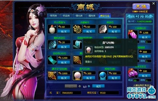 另外真气值的获取,大家也是而要注意的。想要积累真气,只能通过绑定元宝商城或商城属性类中购买真气丹,并进行使用获得,但是每天有使用次数限制,所以每天下线前要注意检查一下自己是否使用过哦!
