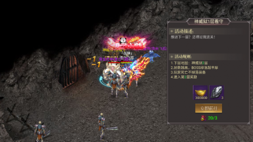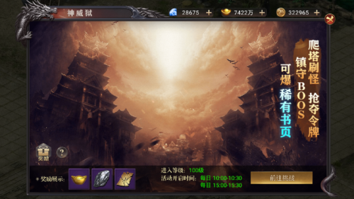 2.进入神威狱后默认在1层,击杀场景怪物有几率掉落神威令牌