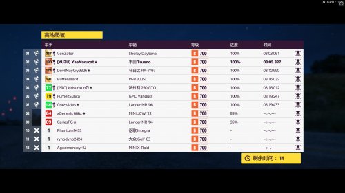 线上跑了几把的成绩,只能说很还原,下山赛贼快,爬坡很慢。