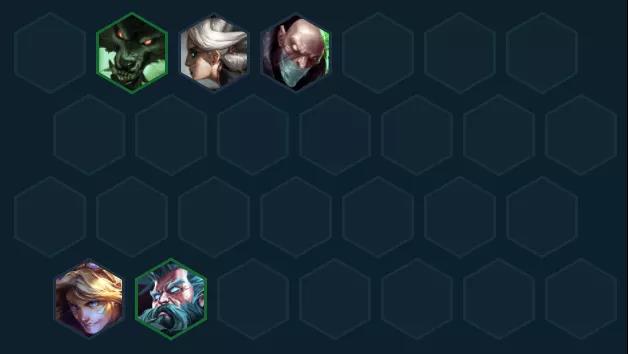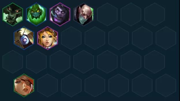 过渡推荐:尽量打连胜,狼人+EZ+青钢影+时光+炼金组成3发明家2精密2挑战,这套前期稍微有点质量就能连胜,6人口再挂3炼金过渡很平滑。