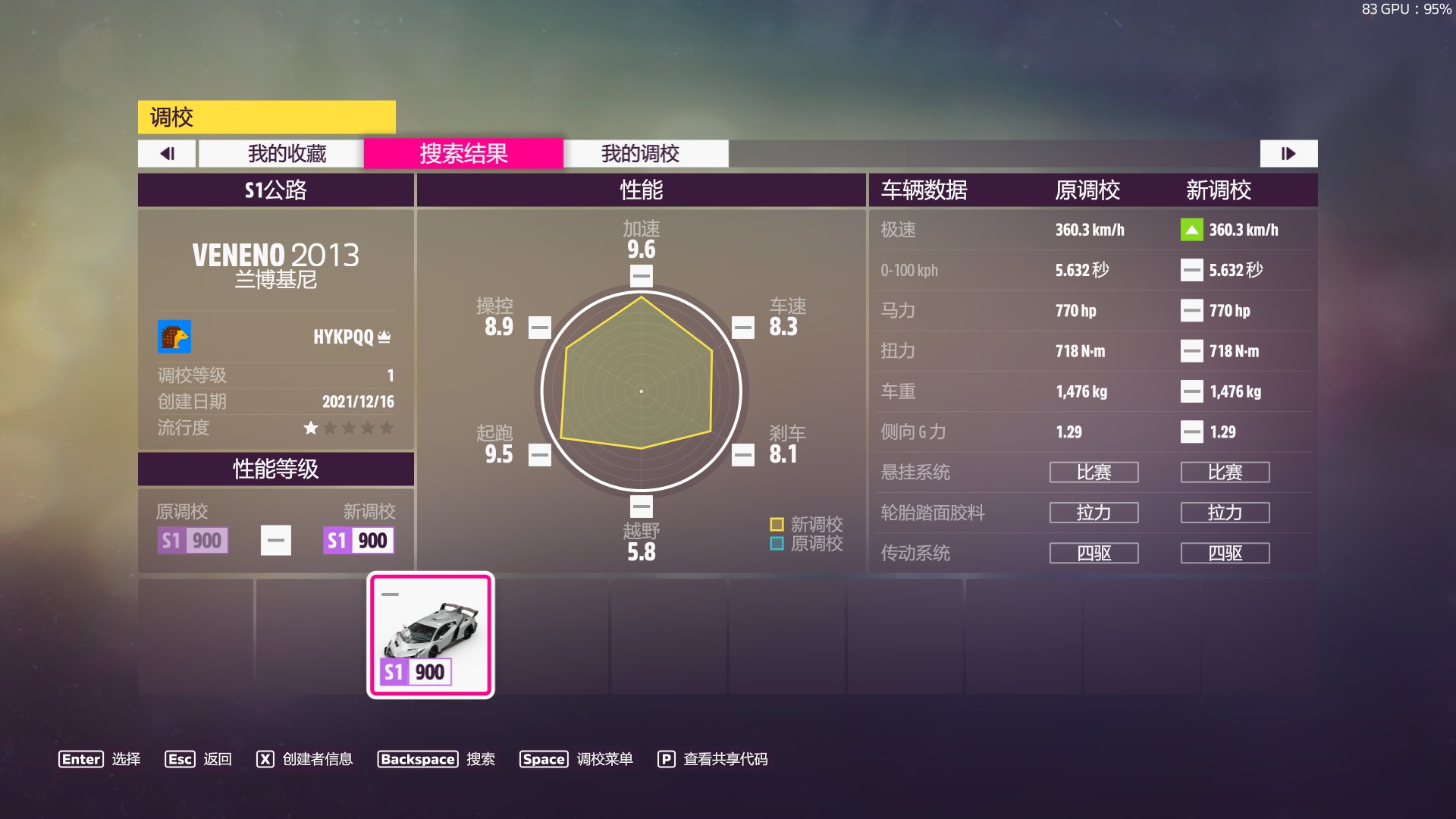 推荐:2013 兰博基尼 VENENO,哈,没想到吧,长这样的超跑能改S1,而且虽然纸面侧G只有2.1,这玩意的操控相当不错,唯一的缺点是有点贵,嫌贵的话可以用我之前调的大牛SV,手感差不多,搜我ID:HYKPQQ找就行。