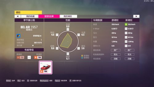季节赛2:B700 街头,BEL AIR,贼好玩的比赛,不是说我调的车多好玩,是AI就尼玛抽象。这游戏一共俩BEL AIR,一辆雪佛兰原厂,一辆HOONIGAN翘头版BEL AIR,AI差不多全开的后者,然后你将会看到各种无厘头的翘头和侧翻,贼有意思。